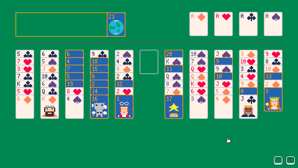 A crude clone of Zachtronic's "Fortune's Foundation" from Zachtronics Solitaire Collection, produced primarily to wrap my head around Picotron, which is like a bigger and more complicated Pico-8.